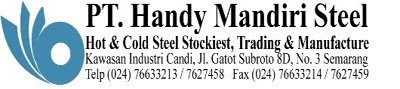 PT. HANDY MANDIRI STEEL yang berlokasi di Kawasan Industri Candi Semarang merupakan perusahaan yang bergerak di bidang besi plat dan baja berdiri sejak tahun 2008 yang memiliki luas gudang 7000 meter persegi. Perusahaan ini berkembang pesat pada tahun 2013 memiliki mesin misalnya Slitting Line 1, Shearing Line 2, Pipe Line 2 and C Channel 2 . Perusahaan kami memproduksi Besi Plat Penyelesaian Dingin (Cold Finished), Besi Plat Canai Dingin, Besi Plat Penyelesaian Panas (Hot Finished), Besi Plat Canai Panas, Plat Besi, Besi Plat, Plat lembaran & Plat Gulungan, tidak hanya perdagangan besi namun juga bidang manufaktur pipa dan C Channel. Setiap bulan perusahaan ini mengimpor HRC sekitar 5000 MT untuk memenuhi kebutuhan mesin-mesin kami.